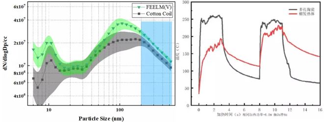 而这其中的改进,不仅是对电子烟体验感本身的提升(图左),更是对电子烟有害物质释放的减少(图右),比如多孔陶瓷的热传导效率更高,从而可以减少雾化时间。